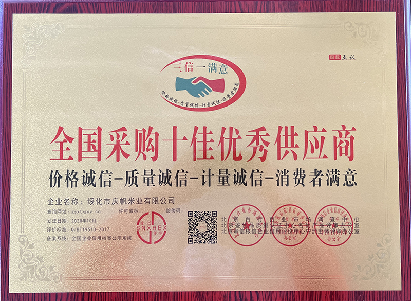 關(guān)于慶帆米業(yè) 客戶至上 品質(zhì)優(yōu)良 您現(xiàn)在的位置:網(wǎng)站首頁 > 關(guān)于我們 > 資質(zhì)榮譽 企業(yè)文化 CORPORATE CULTURE 資質(zhì)榮譽 HONOR 領(lǐng)導(dǎo)致辭 LEADER’S SPEECH 公司簡介 COMPANY PROFILE 優(yōu)秀民營企業(yè)家 中國品牌“放心米” 全國優(yōu)秀民營企業(yè) 全國農(nóng)產(chǎn)品加工標(biāo)桿示范單位 全國采購十佳優(yōu)秀供應(yīng)商 最美捐贈單位 共15條記錄 當(dāng)前為第1頁/共3頁上一頁123下一頁